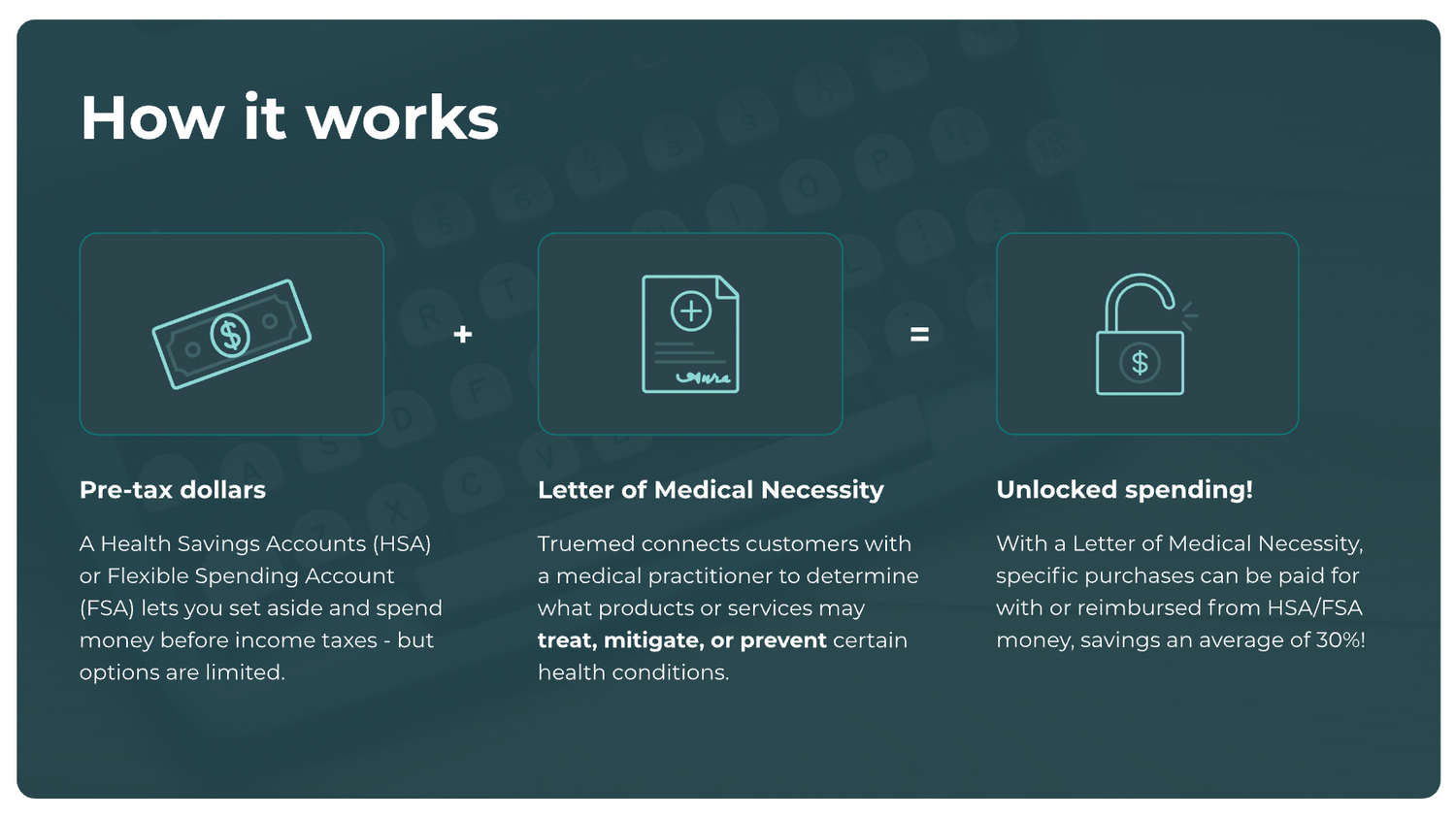 The items in your Truemed Letter of Medical Necessity (“LMN”) are now qualified medical expenses in the same way a visit to the doctor’s office or pharmaceutical product is.