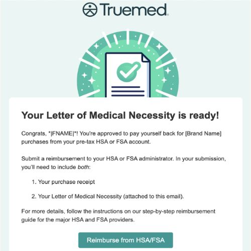 In 1-2 business days, Truemed will email your Letter of Medical Necessity (LMN) and provide instructions for receiving reimbursement from your HSA/FSA administrator.