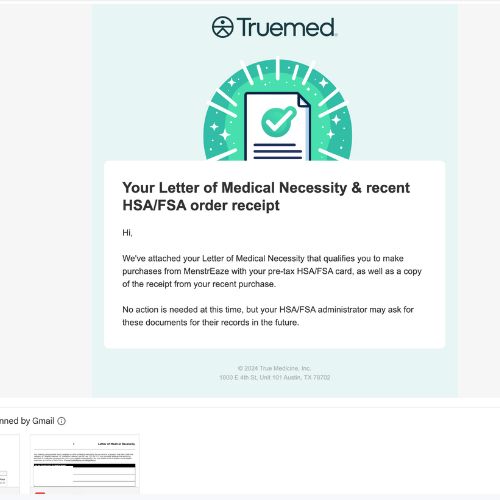Once eligibility is confirmed, you'll receive a confirmation email with your MenstrEaze product details. There’s no other work you need to do. Truemed will send paperwork to ensure compliance.