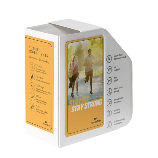 MenstrEaze's featured supplements offer a diverse range of products tailored for women across different age groups. They serve as a foundation for optimal nutrient intake, potentially alleviating pain, stress, hormonal imbalances, mood swings, gut health issues, and other discomforts associated with the menstrual cycle and the transition to menopause. FSA and HSA Eligible.