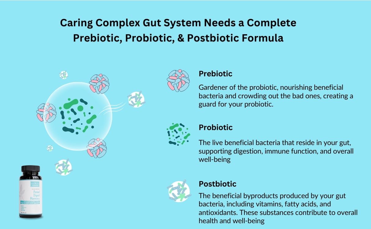 Period Digest Harmony supports immune health by balancing the gut microbiome with prebiotics, probiotics, and postbiotics. A balanced microbiome strengthens the body's natural defenses, improving overall immune function.