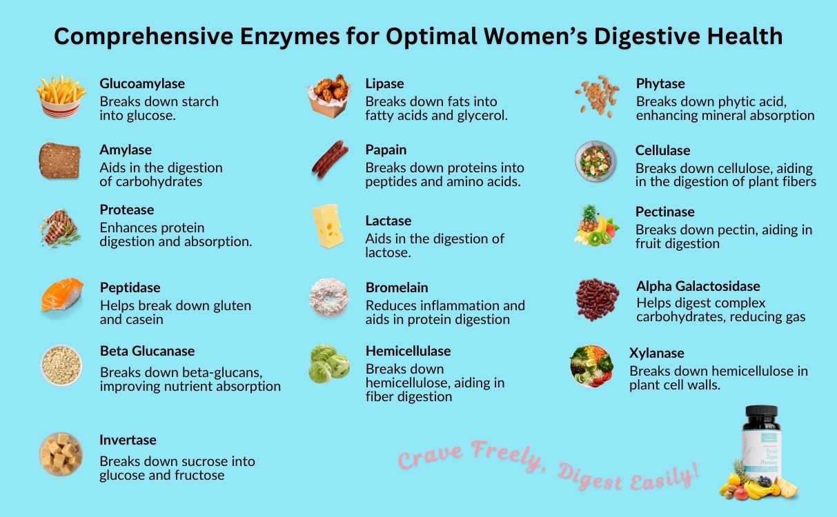 Period Digest Harmony's enzymes are specially designed for fibers, protein, fat, sugar etc. and supplement existing ones to efficiently break down foods, so as to alleviating bloating and gas pain